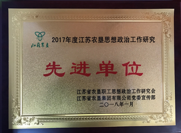 1月14日,在江蘇農(nóng)墾2017年度政研會年會暨思想政治工作會議上,蘇舜公司榮獲2017年度墾區(qū)思想政治工作研究先進單位。