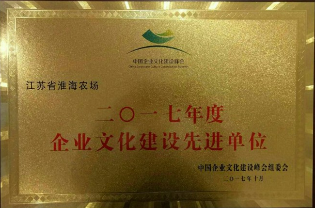 淮海農(nóng)場多年以來實施的“文化陶治工程”,助推了農(nóng)場文化氛圍的進一步拓展,豐富了職工居民的精神文化生活。農(nóng)場2015年獲得全國“模范職工之家”牌匾,2016年獲得國家“職工書屋”榮譽,2017年又獲得中國2017年底企業(yè)文化建設“先進單位”稱號。