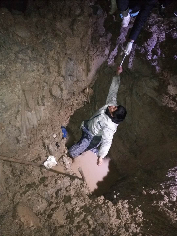 晚上6點(diǎn)30分,水電中心的搶修電話突然響起,位于農(nóng)場的于沈居民點(diǎn)一條供水管道被凍裂,大面積停水。水電中心主任江堯忠第一反應(yīng),“這是一條供水主管網(wǎng),如果搶修不及時(shí),必定會(huì)導(dǎo)致居民生活用水無法正常使用,必須盡快搶修好。”按照制定的應(yīng)急預(yù)案,帶著搶修工人冒著嚴(yán)寒立即趕往搶修現(xiàn)場。由于地面凍層比較厚,搶修人員先使用破碎錘將地面破開,把積水排出去,然后使用專用接頭把漏水點(diǎn)封住,在最短時(shí)間內(nèi)對(duì)漏水管道進(jìn)行搶修,站在冰冷的水中凍的直打哆嗦,大家都咬牙堅(jiān)持,經(jīng)過近3個(gè)小時(shí)的努力搶修,漏水管線得以修復(fù),恢復(fù)了正常供水。