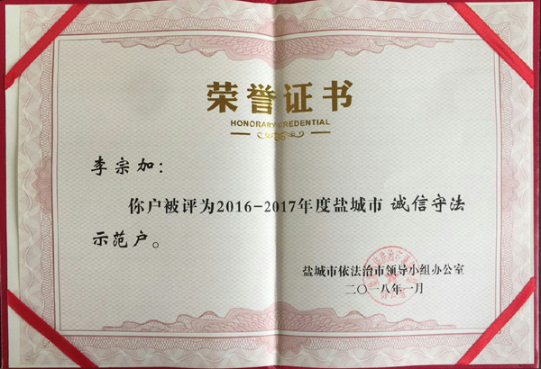 近日傳來喜訊,新洋農(nóng)場(chǎng)有限公司李宗加、朱雪芹、王毓松三戶職工家庭被評(píng)為射陽(yáng)縣“誠(chéng)信守法示范戶”,其中李宗加還被評(píng)為鹽城市“誠(chéng)信守法示范戶”。