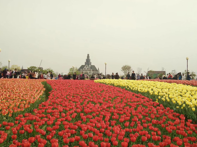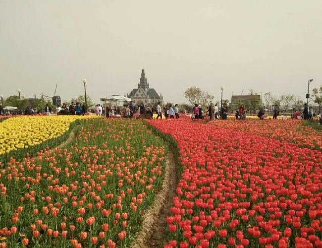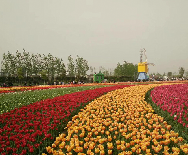 域外的風(fēng)車、郁金香和來自全國各地超高的人氣,特別是那種紅、黃、白、褐、紫、橙等多種花色在春風(fēng)中搖曳,或交織而行,或獨(dú)立成簇,或在高低起伏的土丘上隨意地流淌,宛如天上瑰麗的云彩,又像仙女們織出的緞綢,令人感到流光溢彩又精彩絕倫,看了花海就使心情更加愉悅起來,花海中的荷風(fēng)半島、水岸印象、多彩秀湖、智能莊園的荷蘭風(fēng)格元素,在美侖美奐又色彩斑斕郁金香的襯托下,恍若置身在荷蘭國度的感覺。
