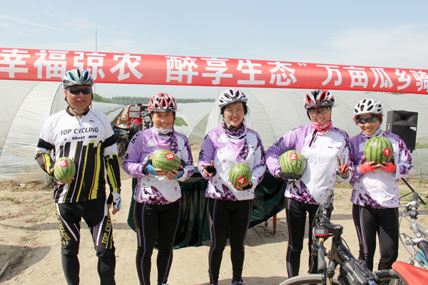 隨著公司黨委書(shū)記、董事長(zhǎng)、總經(jīng)理王世伯打響的發(fā)令槍聲,20多名龍河騎行隊(duì)隊(duì)員身著統(tǒng)一服裝,精神抖擻,英姿颯爽,從農(nóng)和廣場(chǎng)出發(fā),圍繞“?農(nóng)”牌西瓜核心生產(chǎn)區(qū)進(jìn)行健康騎行,全程共10.86公里。五月的農(nóng)場(chǎng)美景如畫(huà),正是大棚西瓜和甜瓜收獲的季節(jié),在第三生產(chǎn)區(qū)大棚西瓜田頭,騎手們紛紛加入猜瓜游戲,誰(shuí)猜的斤兩最接近,香甜的西瓜就歸誰(shuí),這場(chǎng)有趣的猜瓜游戲讓大家開(kāi)心不已。在終點(diǎn)——有機(jī)農(nóng)莊,黃的農(nóng)友小蘭、紅的早春紅玉、翠綠的玉菇甜瓜讓干渴的騎手們大飽口福。