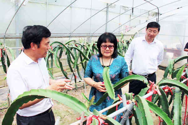 劉克英一行首先來到有機(jī)農(nóng)莊,詳細(xì)了解了農(nóng)產(chǎn)品質(zhì)量管理體系建設(shè)情況,現(xiàn)場察看了有機(jī)農(nóng)業(yè)生產(chǎn)情況及紅心火龍果采摘園的長勢,對有機(jī)櫻桃番茄、早春紅玉西瓜的口感贊不絕口,認(rèn)為有機(jī)農(nóng)莊在“兩西”高效農(nóng)業(yè)上充分發(fā)揮出示范引領(lǐng)作用。在農(nóng)場退伍軍人江海強(qiáng)牽頭成立的富源養(yǎng)殖合作社內(nèi),林下養(yǎng)殖的生態(tài)乳鴿、受市場歡迎的寵物狗養(yǎng)殖吸引了劉克英的目光,她與養(yǎng)殖戶親切交談,細(xì)致地了解乳鴿的飼料構(gòu)成、市場銷售以及鴿糞處理等方面的情況,對小江開動腦筋鉆研市場取得的成就表示贊賞。農(nóng)場西紅花種植戶臧新軍向劉克英介紹了?港農(nóng)場職工居民發(fā)展西紅花種植的情況,西紅花合作社自成立以來已先后帶動66戶職工及周邊鄉(xiāng)鎮(zhèn)農(nóng)戶種植,畝均純效益達(dá)到3萬元以上,創(chuàng)江蘇墾區(qū)高效農(nóng)業(yè)畝效益之最。