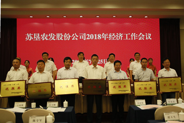 會(huì)議期間,蘇墾農(nóng)發(fā)黃海分公司、蘇墾農(nóng)發(fā)東辛分公司、蘇墾農(nóng)發(fā)臨海分公司與大華種業(yè)集團(tuán)等四家單位作了交流發(fā)言。會(huì)議隆重表彰了一批上半年工作業(yè)績(jī)突出的先進(jìn)集體,授予7家分公司2018年度“三夏”工作優(yōu)勝獎(jiǎng)、6家分公司2018年度拓展基地“三夏”工作優(yōu)勝獎(jiǎng)、3家分公司2018年度小麥高產(chǎn)獎(jiǎng)、10家分公司2018年度夏熟效益獎(jiǎng)、4家分公司2018年度拓展基地夏熟效益獎(jiǎng)。7月24日晚,還專題召開蘇墾農(nóng)服工作推進(jìn)會(huì),就下一階段農(nóng)業(yè)社會(huì)化服務(wù)體系建設(shè)工作進(jìn)行了部署要求。