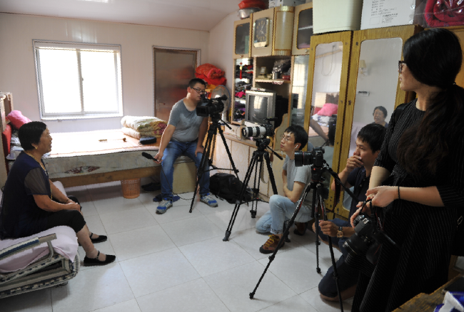當天下午澎湃新聞采訪組通過采訪老人的大女兒唐寶南,五女兒唐秀蘭兩人,詳細地向她們了解了老人的以前的工作經(jīng)歷和現(xiàn)在的生活起居以及健康長壽情況,計劃明天用一天的時間,深入挖掘百歲老人的日常起居及家庭成員的生活情況。圖為澎湃新聞在淮海農(nóng)建四師歷史陳列館和張瑞瑞老人家中采訪時的鏡頭。