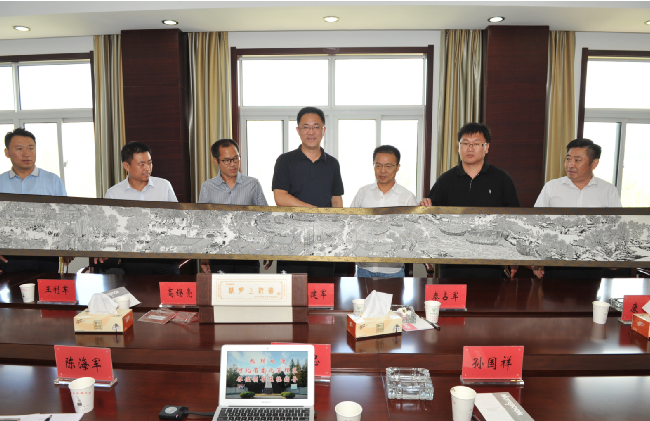 座談結(jié)束后,白建軍一行還向淮海農(nóng)場有限公司贈送了一幅由管理區(qū)自行生產(chǎn),并具有濃郁鄉(xiāng)土氣息的世界非物質(zhì)文化遺產(chǎn)《清明上河圖》精美包裝剪紙。