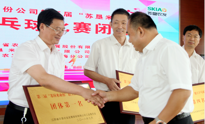 此次比賽共決出團(tuán)體和男單兩個項(xiàng)目的前六名和十二強(qiáng)。經(jīng)過兩天緊張激烈的比賽, 新洋分公司代表隊脫穎而出,榮獲團(tuán)體第一名,第二至第六名的代表隊分別為:黃海分公司、蘇墾米業(yè)、東辛分公司、三河分公司、白馬湖分公司。新洋分公司的王光軼榮獲男子單打第一名,三河分公司項(xiàng)永寶、新曹分公司顧文才分獲二、三名。新洋分公司、黃海分公司、蘇墾米業(yè)、東辛分公司獲得賽會組織獎;南通分公司榮獲精神文明獎。