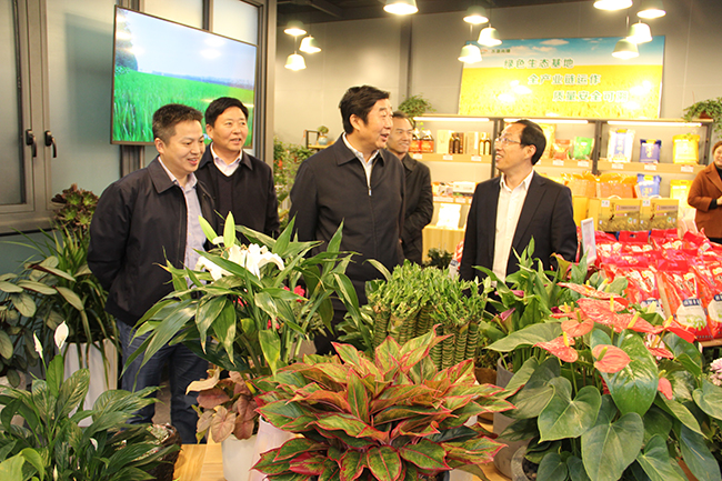 胡兆輝一行先后考察了蘇墾生態(tài)農(nóng)產(chǎn)品直銷中心和蘇墾知青之家。在直銷中心門店,胡兆輝詳細(xì)詢問了蘇墾大米、一宅一花經(jīng)營情況;在知青之家,與當(dāng)年的下放知青親切交談,向他們通報(bào)第二故鄉(xiāng)的發(fā)展情況。胡兆輝現(xiàn)場辦公,對(duì)金橋公司與蘇墾米業(yè)、蘇墾園藝緊密合作圍繞農(nóng)墾主業(yè)拓展經(jīng)營提出指導(dǎo)協(xié)調(diào)意見。