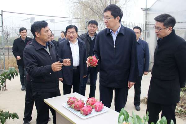 王旭東一行深入連棟大棚內(nèi),詳細了解紅心火龍果、新品種蔬菜—佛發(fā)菜的種植、市場銷售行情以及經(jīng)濟收益情況,對有機農(nóng)莊在現(xiàn)代農(nóng)業(yè)上的的示范引領作用表示充分肯定。在該場容器扦插中山杉育苗基地,王旭東認為,利用空閑大棚扦插苗木生產(chǎn)是發(fā)展高效農(nóng)業(yè)的新途徑,值得本市各鄉(xiāng)鎮(zhèn)學習和借鑒。
