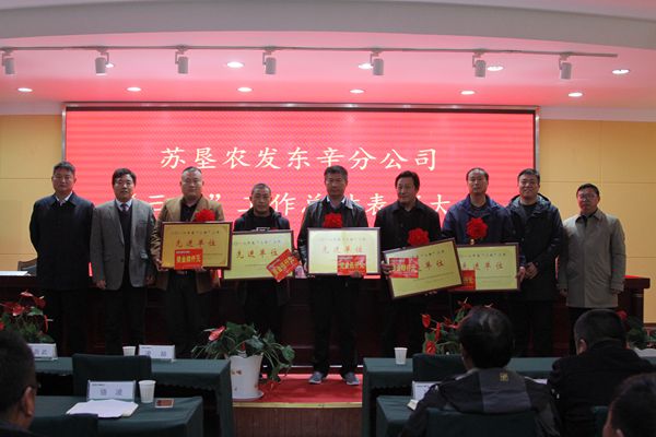 為進(jìn)一步總結(jié)今年“三秋”工作經(jīng)驗(yàn),表彰先進(jìn)單位及個(gè)人,激勵(lì)分公司全體干群向更高奮斗目標(biāo)再出發(fā),11月28日下午,蘇墾農(nóng)發(fā)東辛分公司在招待所南會(huì)議室召開2018年度冬訓(xùn)暨“三秋”工作總結(jié)表彰大會(huì)。集團(tuán)公司原農(nóng)業(yè)處處長、水稻專家凌勵(lì),分公司經(jīng)營班子成員、機(jī)關(guān)部門及生產(chǎn)區(qū)相關(guān)人員共計(jì)200余人參加了本次會(huì)議。
