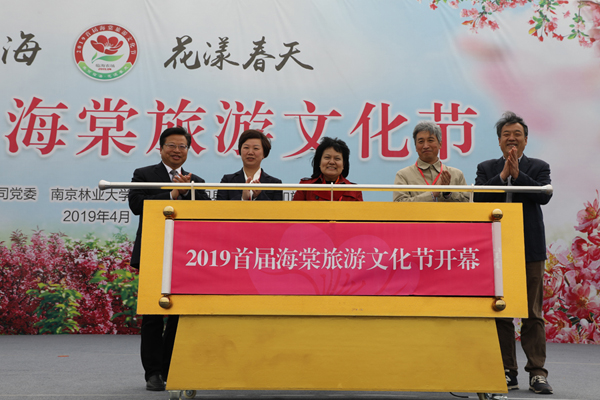 開幕式上,劉克英、吳岡玉、袁軍、王良桂、黃禮慶共同啟動開幕卷軸,拉開了2019首屆海棠旅游文化節的序幕。