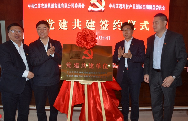 4月29日上午,蘇墾南通公司黨委與江海鎮區黨委舉辦企地黨建共建簽約儀式。雙方領導班子、黨組織負責人和部室負責人參加簽約儀式。南通市委組織部副部長、市委“兩新”工委書記張輝同志和蘇通科技產業園區黨工委副書記張靈同志應邀出席此次活動。簽約儀式由蘇墾南通公司黨委副書記薛忠同志主持。