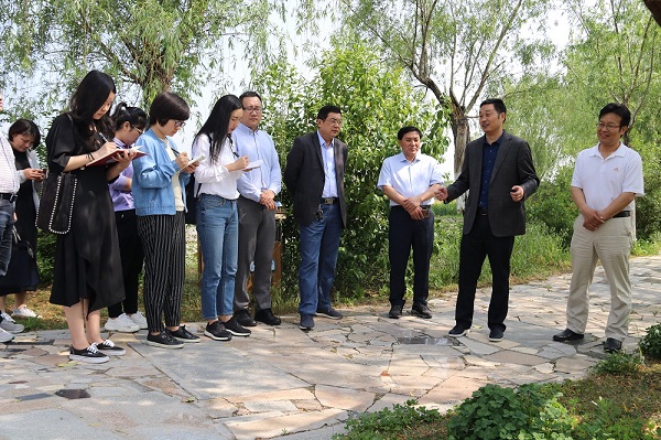 采訪組一行首先來到云水灣濕地公園,邊走邊看邊采訪,大到園區規劃、小到一花一果,記者們都做了詳細了解。農場公司黨委書記劉衛華著重介紹了江蘇省第十二屆園博會的申辦和當前推進情況。劉衛華介紹,在農墾舉辦省園博會,是江蘇農墾對習近平總書記“綠水青山就是金山銀山”生態發展理念的具體落實,是對“創新、協調、綠色、開放、共享”的發展思路生動實踐。云臺農場公司在園博會籌備過程中,將不斷注重場域環境與園區環境、場風文明與生態文明的協調,引領居民綠色生活方式,擴大開放程度,優化公共空間。園區所展示的生物多樣性、自然生態景觀和云臺優美舒適的人居環境相輔相成,體現了人與自然和諧共存的觀念,從而推進了云臺生態宜居共享發展的現代農業發展進程。云臺農場在不久的未來勢必成為連云港市的“會客廳”,云臺農場公司也將把園博園的建設作為城市發展進程的重要景觀,依據功能布局、展園布置、交通銜接和設施配套,集中規劃建設一大批公共文化服務設施和服務舉措,為全市人民提供集休閑、娛樂、健身于一體的大型公共活動空間,增強廣大居民群眾的歸屬感、獲得感。