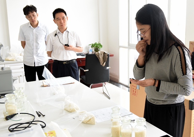 比賽上當天上午8點30分準點開賽,大米感官檢測和消防水帶連接同步舉行。我們在大米感官檢測現場看到,一個個參賽選手依次進入比賽場地,對參試瓶裝和袋裝大米樣品中4項主要質量指標的感官檢測數據、質量等級等進行檢測,他們通過看、聞、嚼、捻等感官觸摸,很嫻熟地完成了大米感官檢測答題。“這些都是我們平時經常操作的,我很快就完成了這些質量數據指標的檢測。”當黃海公司參賽選手胡娜走出檢測室時,自信地說。