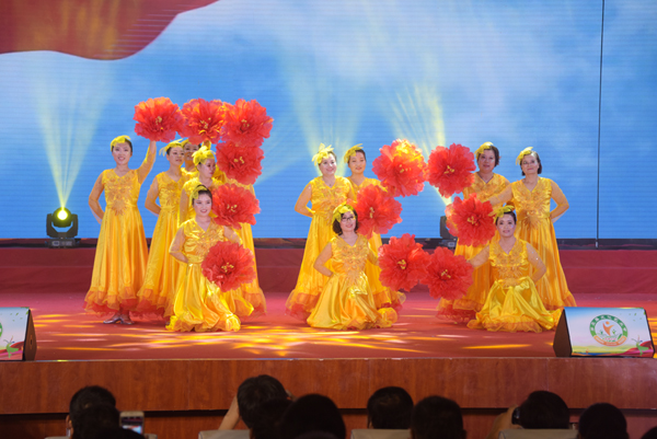 歌舞《祖國之戀》拉開了文藝演出的序幕。歌伴舞《父親的草原母親的河》《中國好日子》、舞蹈《中國脊梁》、合唱《歌唱祖國》《團結就是力量》《大中國》、獨唱《我的中國心》《我和我的祖國》《最美的歌兒唱給媽媽》、《精忠報國》、男女對唱《國家》、配樂詩朗誦《祖國頌》、書法繪畫現場表演、民樂合奏《北京一夜》、笛子獨奏加伴舞《半壺紗》、鋼琴演奏《獻給愛麗絲》、古箏合奏《天路》《我和我的祖國》、薩克斯《美麗的草原我的家》、快板《慶祝建國70周年》、廣場舞《祝福祖國》等多樣的表現形式,為觀眾送上了一場主題鮮明、內容健康的文化大餐,給祖國母親送去最好的生日禮物。駐場單位國信集團和射陽農商行、蘇墾米業臨海分公司、大華種業臨海分公司帶來的精彩節目為藝術節更增添了一抹亮色。現場觀眾歡呼雀躍,紛紛為演職人員點贊、為祖國點贊、為新時代點贊。