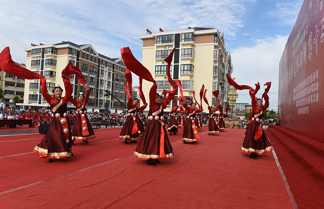 熱烈慶祝中華人民共和國成立70周年和江蘇省淮海農場有限公司第十三屆廣場文化節活動的成功舉辦,掀起了農場職工同唱愛國歌的熱潮,也讓廣大職工居民在視聽中,享受著淮海高質量發展帶來的文化盛宴。圖為廣場文化節部分節目場景。