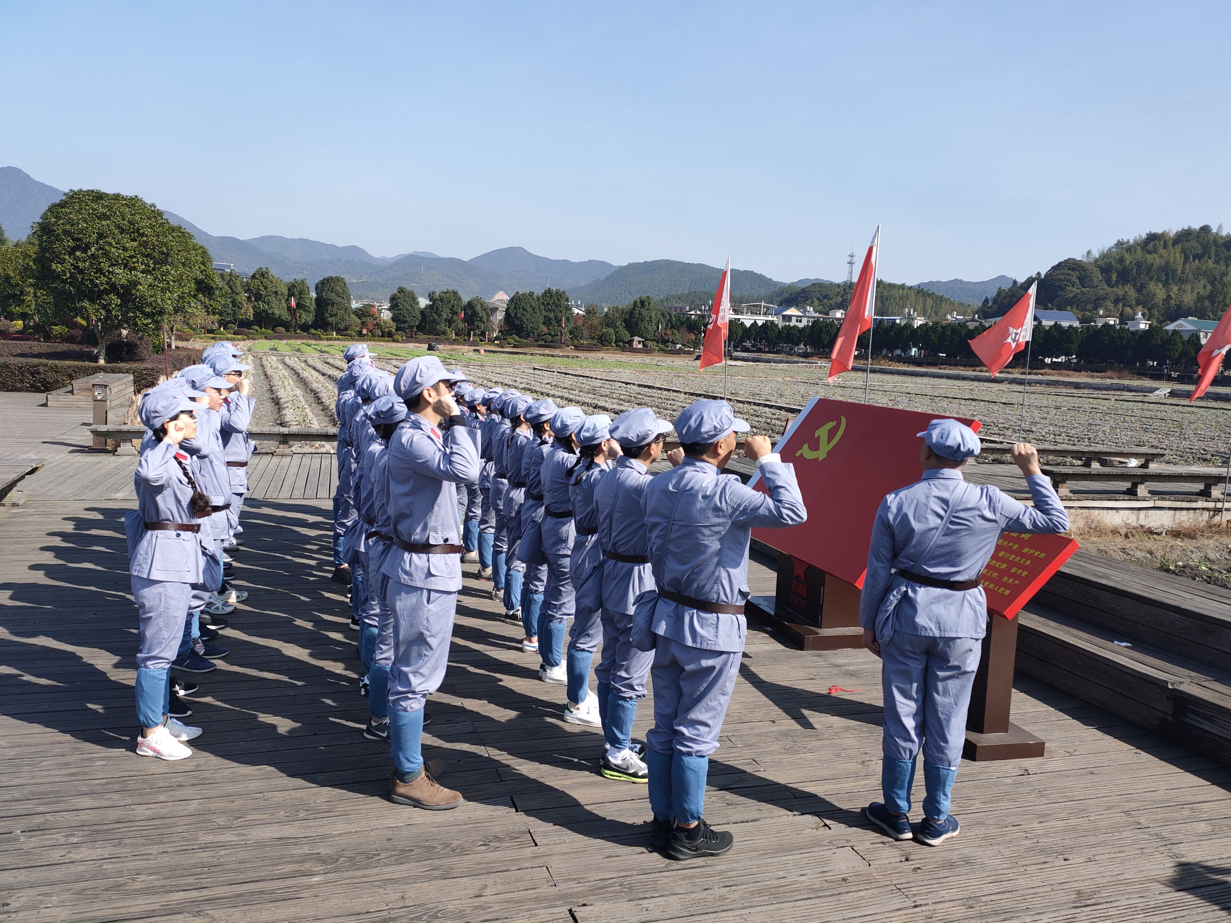 前去的黨員先后參觀了紅軍長征第一村——中復村、瞿秋白紀念館、福建省蘇維埃政府、古田會址,并在古田會址重溫了入黨誓詞。古田會址北側是毛主席紀念園,公司黨委向毛澤東雕像敬獻花籃,大家向毛澤東雕像三鞠躬,并瞻仰了毛澤東雕像,深切緬懷老一輩革命家的豐功偉績。