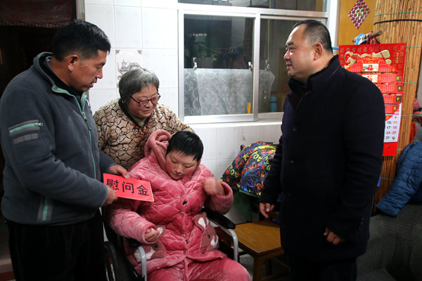 黨委委員仰海州帶著慰問品和慰問金來到困難職工王聞清的家中,向他致以節日的問候和新春的祝福。得知王聞清家是一戶多殘,女兒智力重殘患病住院,醫藥費高,但家庭收入卻很低,生活十分困難。仰海洲鼓勵他樹立克服困難、奮發圖強的決心,早日走出困境。