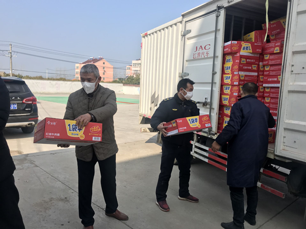 2月8日-9日, 在三河農場疫情防控檢測點同樣出現了一幕讓人溫暖和感動畫面,三河農場曉峰加油站老板朱軍給農場在南大門和西大門防控檢測點值班人員送去100箱礦泉水和20箱火腿腸、50箱泡面、消毒水和口罩,用實際行動支持為保衛三河人民身體健康和生命安全,堅守在疫情防控點的值班人員。朱軍表示,疫情開始后,口罩、消毒水等物質緊缺,看到守衛在防控一線的人員日夜堅守在崗位,使他的心靈受到了極大的震撼,自己能為農場疫情防控工作出份力也是應該的,樸素的話語讓守衛防控一線人員更加堅定了履職盡責和嚴防死守捍衛三河安全的決心。