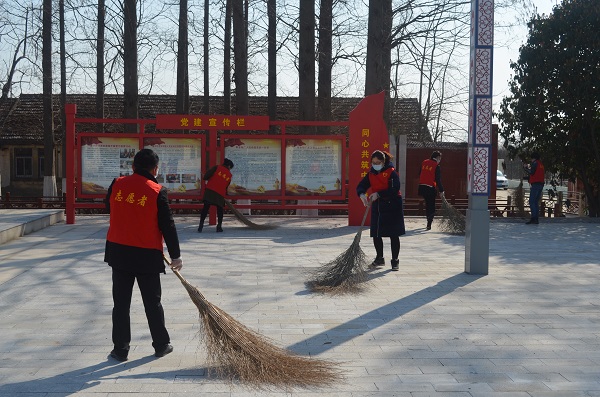 在黨群文化廣場,志愿者們對廣場上的落葉、樹枝等雜物進行打掃清理,為農場公司職工居們提供干凈、整潔的休閑之處。疫情期間,志愿者們挨家挨戶走訪宣傳,發放疫情防控宣傳單,大力宣傳疫情防控知識,提醒廣大職工居民疫情期間不出門不串門。