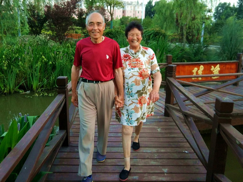為了老伴的生命安全,施學兵現在連長期以來鐘情的健身操舞也不跳了,每天不是陪著妻子上街買菜、操持家務,就是牽著妻子的手在農場的公園道路上散步六七公里、陪著熟悉的人聊天,并經常到公園內的器材上拉伸鍛煉,舒展下筋骨,保持健康的體魄。因而這對恩愛夫妻成為淮海公園內和路途中的一道美麗風景。因為在他們之間,結婚這么多年來,雖沒有驚天動地的誓言,但長期以來的堅守和相濡以沫的愛情,讓他們依然保持著相親相愛的保鮮姿態,享受著幸福的每一天。