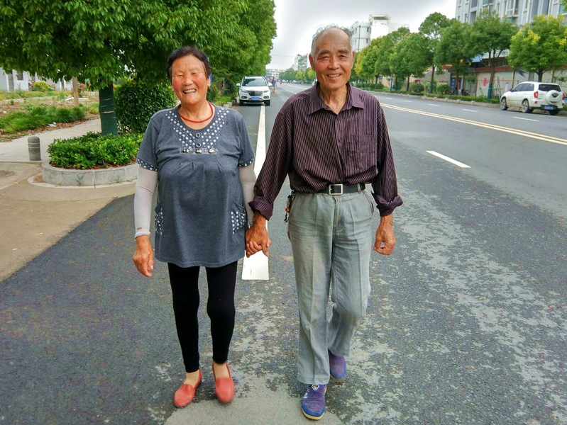 無論是在晨光中,還是在暮靄里,施學后夫婦就是以這樣攙手的姿態,收獲著人們羨慕的目光,并在相互陪伴和關照中,享受著生活的幸福的美好。圖為施學兵夫婦在一起攙手散步時的鏡頭。