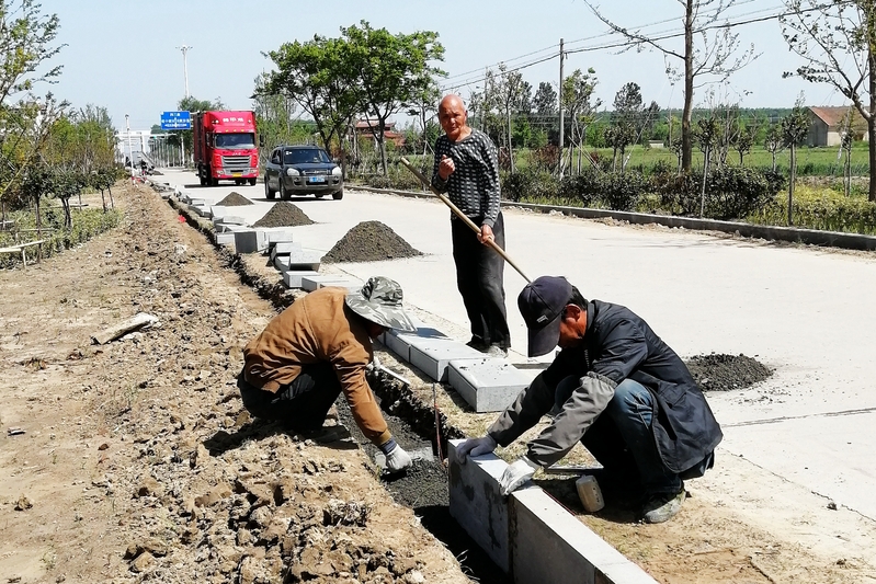 按照射陽縣的統一規劃,射鹽線新洋路段要建成景觀帶,鋪設路牙是景觀帶建設的配套工程。射鹽線新洋路段原先是水泥路,寬度有限。按照建設景觀路的要求,路道要放寬,兩邊應建路牙。因此,在集團公司的大力支持下,對路道進行改造,在路道兩邊鋪設路牙。這項工程與綠化工程正同步施工中。