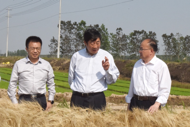 胡兆輝先后走進小麥、大麥等高產田間,大麥曬場現場和高效農業園區種植基地,每到一處親切慰問生產一線管理人員,仔細了解和聽取相關情況介紹,對淮海的各項工作表示充分肯定。