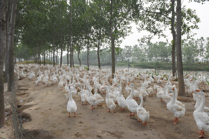 據了解,這是該分場社區十六大隊職工卞元如去年在5月底前,通過林下堆堤河道的資源優勢,吸引了家中有炕坊的合伙人前來投資30多萬元,一起發展林下養殖經濟。目前,他們通過繁育1200只三花鵝,走林下三花鵝養殖、種蛋繁育、幼鵝銷售等相連接的產業鏈,不僅促進的林木的生長,也產生了較好的經濟疊加效益。圖為林下的三花鵝及飼養員給鵝投料時的鏡頭。