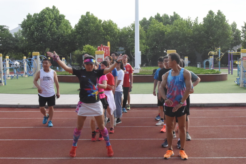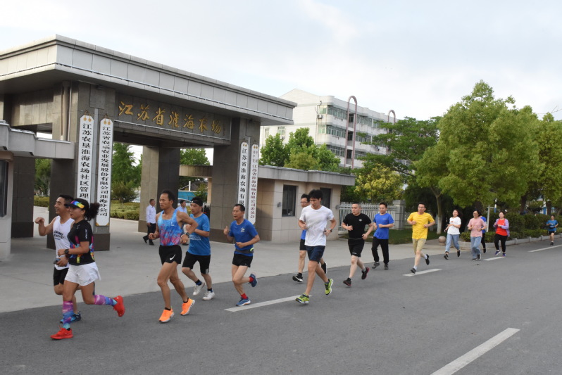參加當天淮海跑團的不但有去年光榮入選第六屆最美射陽人“最美老師”稱號的射陽跑協副秘書長楊晉,也是獲得不同馬拉松賽事的其他三名冠軍參賽,他們分別是:今年5月30日參加連云港第四屆長城之巔越野比賽女子50公里第一名的蔡霞;參加鹽城市八運會10公里馬拉松冠軍、2020年射陽縣“健橋乳業杯”迎新春長跑比賽10公里冠軍的高來源;在部隊軍事運動會,拿了1000米以及三公里武裝跑第一名,并且去年參加鹽城和淮安半程馬拉松賽事冠軍的高俊等獲得各項馬拉松賽事的冠軍,特地來到射陽跑協下的淮海跑團來參加友情長跑活動。并借助淮海跑團的長跑活動,讓農場公司馬拉松跑友們可以得到更專業、更全面、更健康的跑步訓練和指導,也讓大家一睹馬拉松跑步健將們的風采。