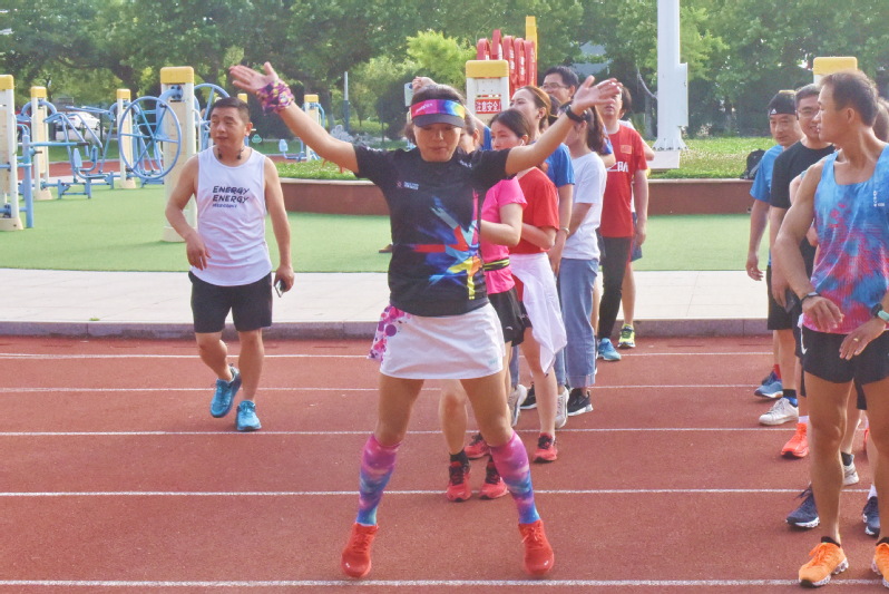 勇往直前,只為攀登。吃過苦受過累,方知平淡生活的幸福和甜蜜。圖為蔡霞在馬拉松長跑前進行隊前熱身。