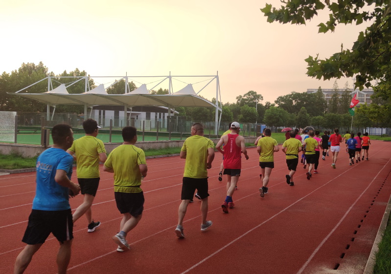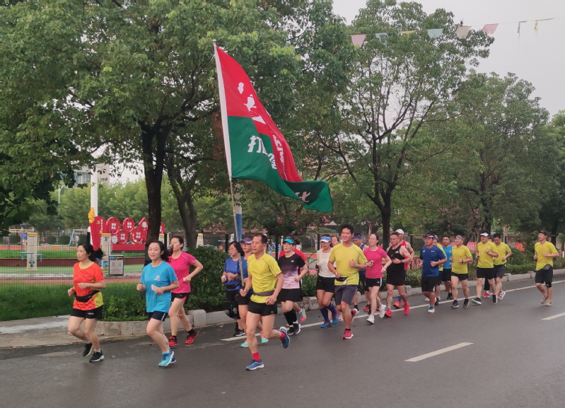 8月10日傍晚,在淮海農場場域內的道路上,一個20多人的馬拉松跑步方隊引起了農場職工居民的注意,大家紛紛側目,觀看著舉著“打造淮海健康文化”字體的淮海跑團標識旗幟在行進著,這一特殊的跑步方隊特別耀眼,成為農場一條亮麗的風景。