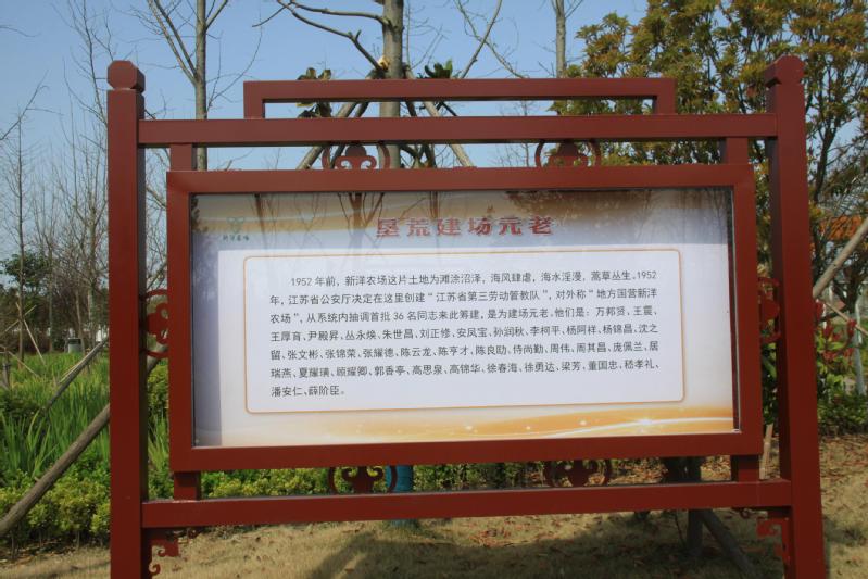 進入金龍灣古色古香的大門,繞過小石林,迎面就是一條寬寬的文化長廊,長廊兩邊豎立著眾多的櫥窗,第一塊櫥窗就是“墾荒建場元老”36人的名字。