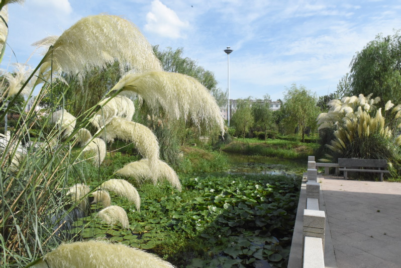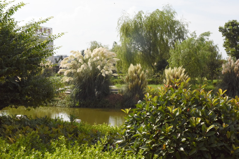 在孩童時節,我們在上學途中,常在蒲葦草間穿梭、躲藏,特別是在開花季節,我們常攥著那毛絨絨花序,撫摸玩耍。那個年代蒲葦草在林間地頭和坡河坎上生長了許多,其高大的植株,綻放的蘆花,在野外看來甚是美麗。長長的蒲葦草常被媽媽割回家,曬干后用作包裹粽子用的繩索,結實得很。如今,農場把這一草本植物通過引進種植在職工群眾游樂休閑的淮海公園內,就是把她那輕盈飛揚,飄逸灑脫的姿態植入公園,讓人在豐富遐想和游玩的同時,打造出新的景致,如今看來,蒲葦草果真不凡,在開放季節更是別有一番韻味。