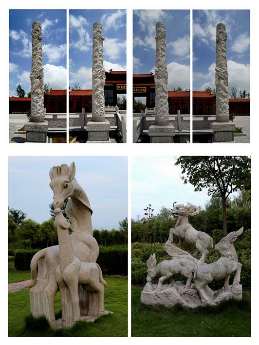 此外還有三羊開泰、母子情深等動物石刻雕塑,組成了一個石刻雕塑群,石刻石雕在金龍灣大放異彩。