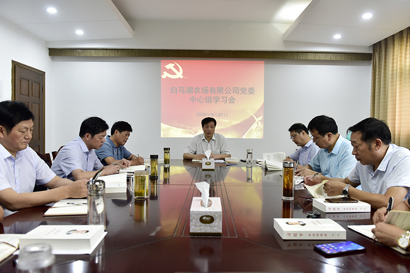 9月21日上午,白馬湖農(nóng)場公司黨委中心組舉行第十次集中學(xué)習(xí)會,認真學(xué)習(xí)《習(xí)近平治國理政》第三卷第一專題、第二專題相關(guān)篇章并交流研討心得體會,及時傳達集團公司黨建工作推進會和產(chǎn)業(yè)發(fā)展推進會精神。黨委書記姚春華主持學(xué)習(xí)會,中心組全體成員參加學(xué)習(xí)會。
