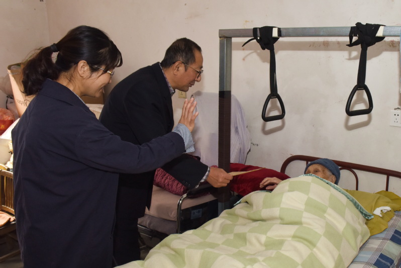 據悉,敬老是淮海農場的優良傳統,重陽節慰問百歲老人也是農場多年來一直做的品牌活動之一,以期在淮海農場的廣大職工居民中,不斷倡導敬老愛老文明的新風尚,并讓尊老成為大家共同遵守的品牌。圖為走訪人員在百歲老人家中進行慰問地的鏡頭。