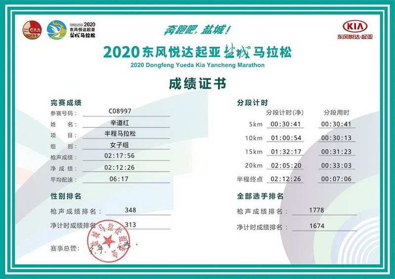最近兩天,淮海農場50多名馬拉松健兒在鹽城城南公園開啟的2020鹽城馬拉松比賽的活動情況,持續在淮海跑團微信群中受到熱議,同時也涌現了許多在馬拉松比賽過程中刷新了的成績和運動好手,讓大家在驚嘆之余,不免也讓眾多的跑友們規劃起下一步自身馬拉松的目標。同時也讓當天參與全程和半程馬拉松比賽的選手們,紛紛在淮海跑友微信群中,通過曬成績證書的形式,來展示自我,惹得了群中的跑友們甚是羨慕和點贊。