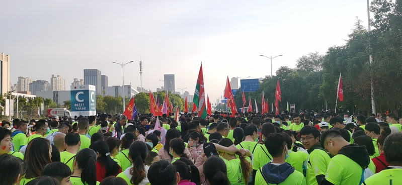 “這個才是跑馬的正真意義,不在乎成績,重在參與和堅持,并不斷的突破自我。”參加迷你馬拉松比賽的淮海跑團跑友徐輝與群友李素兵相邀時說,“下次我們也來挑戰半馬。”