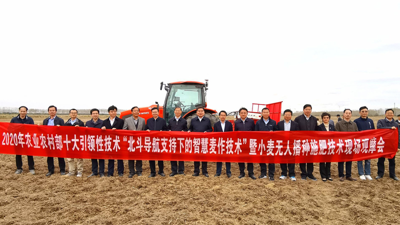 11月5日,農業農村部2020年十大引領性農業技術“北斗導航支持下的智慧麥作技術”小麥無人播種施肥技術現場觀摩會在臨海舉行,智慧麥作技術集成示范基地落戶蘇墾農發智慧農業科技園。