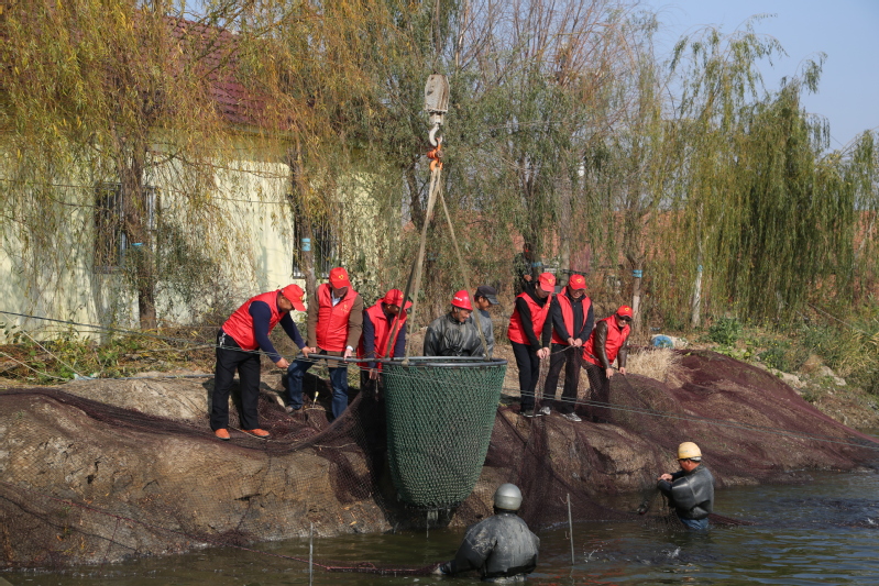在集體養殖基地塘口,大家沒有做片刻的休息,馬上投入到捕魚活動中。有的拽網,有的搬魚,有的撿魚,看到鮮活的鯉魚安全裝進魚車,甚是喜人。雖然一個個累得腰酸腿痛,大家沒有一點埋怨。不知不覺,一天時間已經過去了,看著豐收的喜悅,大家滿臉都是笑容。紛紛表示,能為我們養殖戶貢獻出自己的一份力量,再苦再累也是值了。