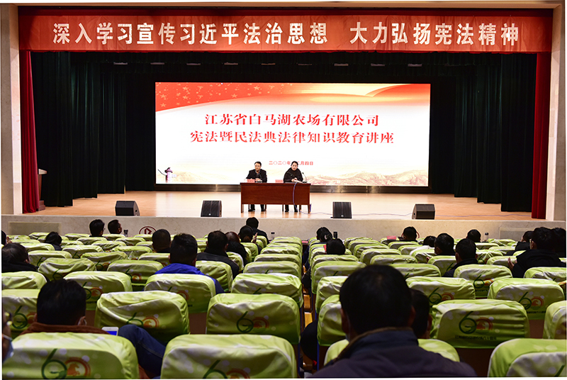 12月4日上午,在我國第七個國家憲法日和第三個“憲法宣傳周”之際,白馬湖農(nóng)場公司圍繞“深入學(xué)習(xí)貫徹習(xí)近平法治思想 大力弘揚憲法精神”這一主題,通過舉辦憲法暨民法典法律知識教育講座,同時啟動開展“法治宣傳月”和“憲法宣傳周”活動,深刻宣傳領(lǐng)會黨的十九屆五中全會精神,深化了解把握全面依法治國的重大意義。