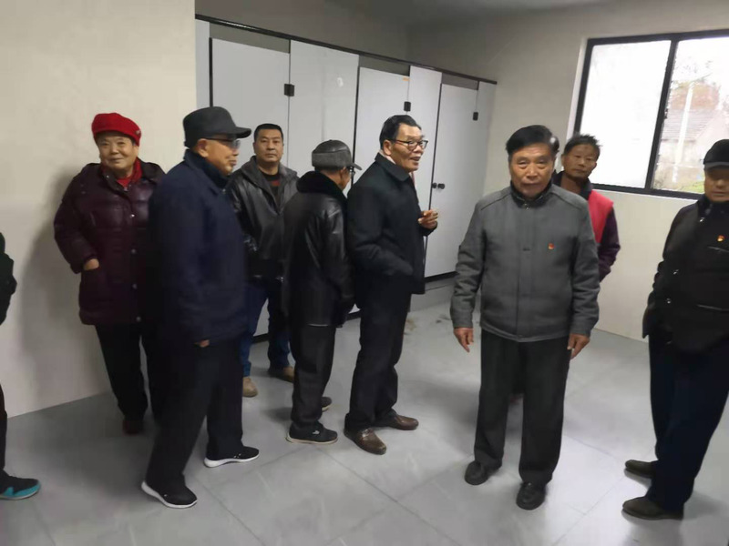 圖為支部黨員對民生工程衛生廁所贊不絕口
