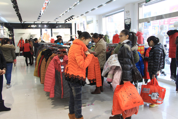 元旦節前,新洋農場迎來了一場低溫寒潮冰雪天氣,持續走低的氣溫使得人們紛紛購買羽絨服御寒過冬。場域內美爾姿、羽浪、品瑞等品牌羽絨服專賣店迎來眾多顧客,今年又是一個羽絨服“銷售旺季”。