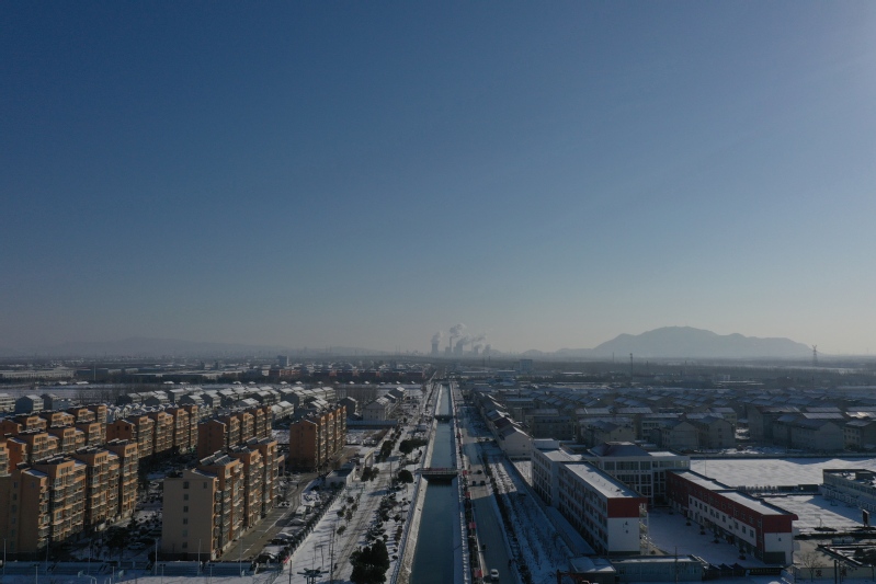 雪后初晴,利用無人機航拍記錄這一美麗的場景。只見崗埠農場小城鎮大雪過后一片白色的景象,到處是白雪皚皚,與藍天形成了強烈的對比,構成了一幅幅生動的藍天白雪圖。