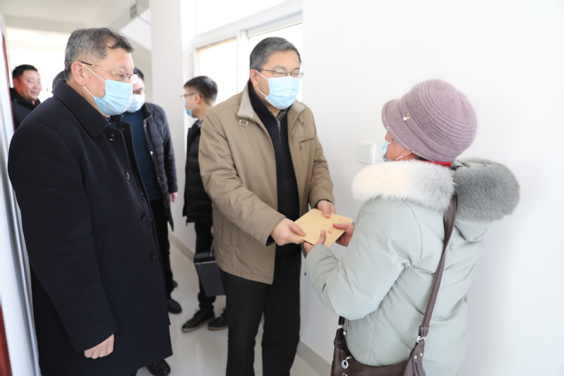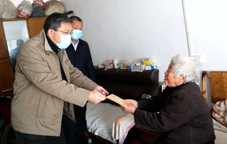 在離休干部郝玉山遺孀李存香家中,楊義林詳細詢問她的身體和生活情況,給她送去慰問品和慰問金,叮囑她多注意身體,并要求隨行人員多關心關注,盡可能地解決實際困難,祝她度過一個愉快的新春佳節。