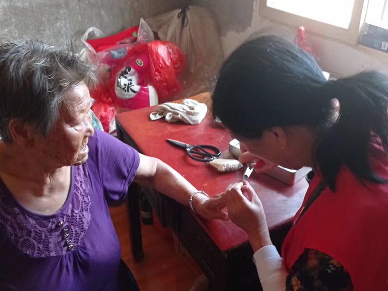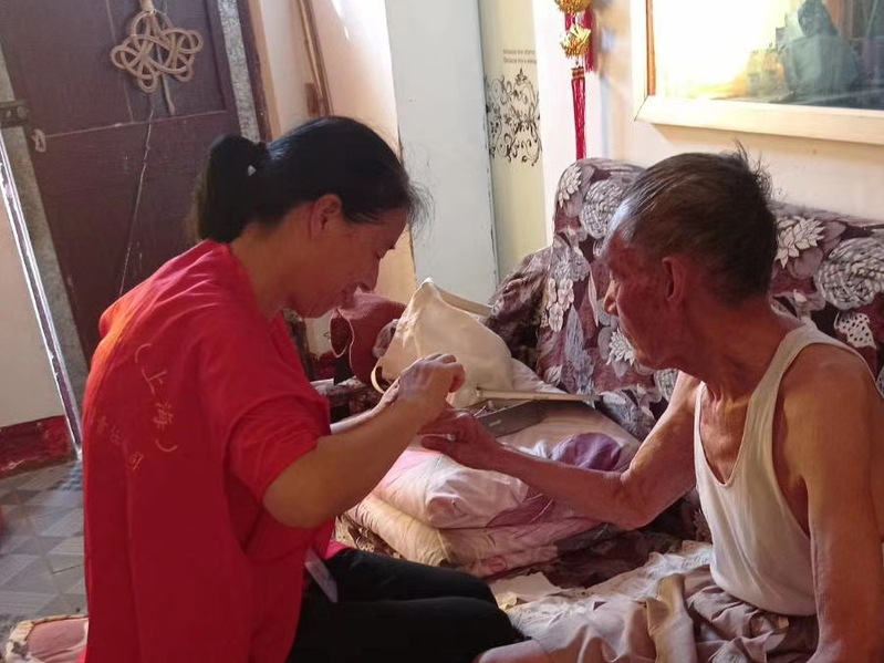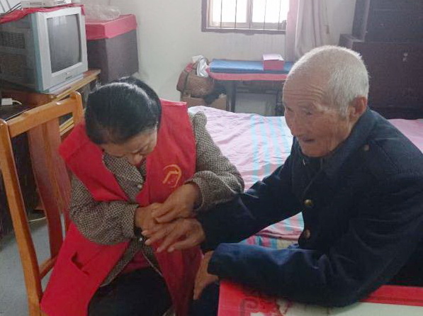 據了解,年齡達到80歲的老人,在淮海是極其龐大的一個群體,許多老人家庭、甚至一些孤寡老人因為子女不在身邊而承受著異常的孤獨,有時還要備受病痛的折磨。而淮海居家養老照護員的出現和居家養老社會服務的開展,無疑為他們開辟了一條親情式的服務通道,能讓他們在養老服務和社會各界的親情關愛中,享受頤養天年之樂和生活的美好。圖為金實銀康居家養老服務人員在上門服務時的鏡頭。