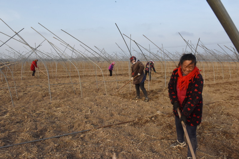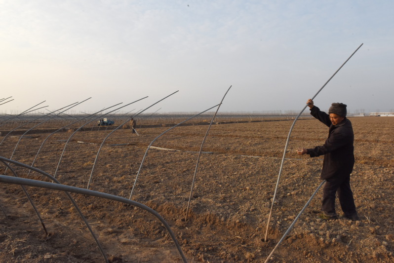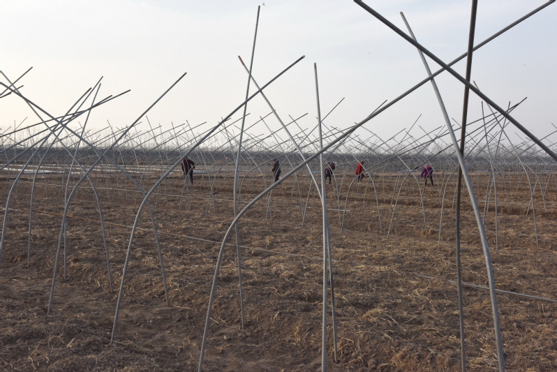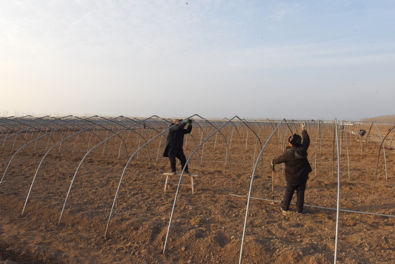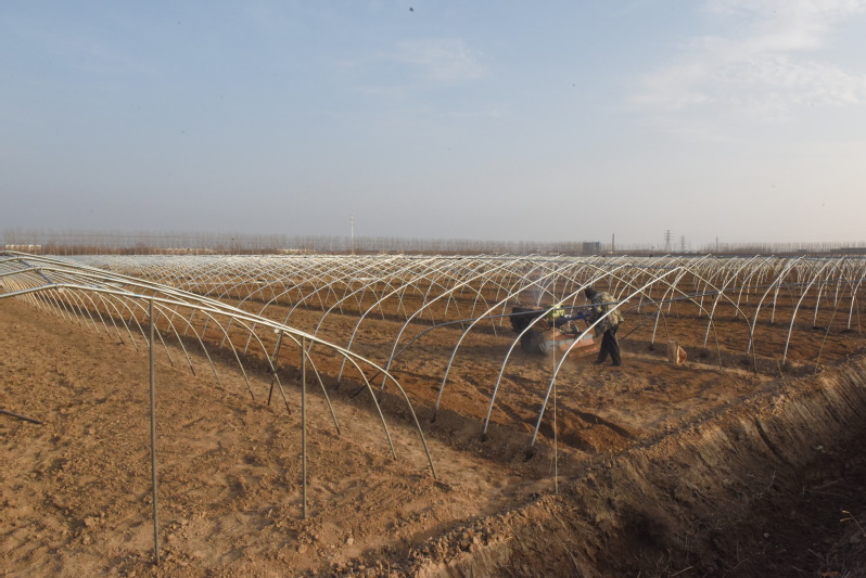 大面積連片在淮海進行的西瓜種植,不僅讓懷揣技術、經驗、資金和市場的淅江瓜農借助農場小城鎮的集聚效應,借助充足的勞動力獲得增收的紅利,同時西瓜地大棚搭建及今后棚內的各種管理措施,可以較好地帶動農場的職工居民和周邊農村的群眾,借西瓜種植基地的繁育種植和市場銷售,而實現他們在“家門口”打工創收的夢想,有力地帶動了廣大職工居民和農村群眾借農機和勞務來實現增收。圖為職工群眾在大棚基地里進行勞作時的鏡頭。