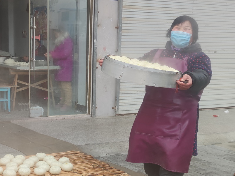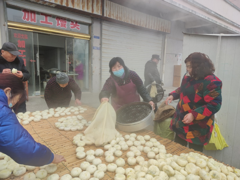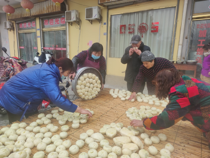 今年60歲的賈長梅是淮海農場淮海路15號樓的居民,以前她和丈夫是濱海縣振東鄉人,后來到農場以外包工的身份種田,隨著農場對農業生產的整合和股份制經營,她的丈夫就替農場管理農田,來謀取打工管理的收入,加上平時愛好在十邊隙地種植,日子還過得較好。而賈長梅平時也經常在外做些幫工的活,夫妻倆利用勤勞的雙手,日子過得也是苦中有甜。夫妻倆在這樣的背景下,最終他們在農場小城鎮中買了樓房,還購買了門面房,以至于每年她就利用春節到來的時節,通過手藝來為集聚到農場小城鎮中發展的廣大職工居民提供春節前蒸饅頭包包子的服務,此舉受到了因住上樓房或家中不便蒸饅頭的眾鄉鄰的歡迎。