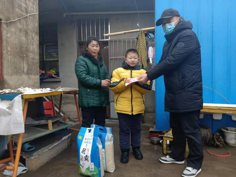 “李懷兵,你好!我給你帶來了兩袋米和500元錢,這是我代表陸同聯來慰問你的心意,務必請你收下!”1月26日上午8時許,淮海農場社區城西居委會主任臧成龍攜帶4袋大米和1000元現金,先后來到城西振興小區困難居民李懷兵和嚴建明的家中,應邀對這兩戶貧困戶開展節前獻愛心送溫暖活動,為他們送上節日的祝福和美好的祝愿。